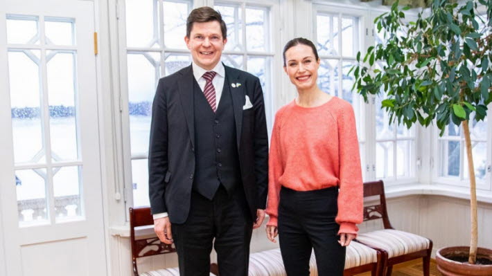 Speaker Andreas Norlén and Prime Minister Sanna Marin at the Prime Minister's official residence Villa Bjälbo.